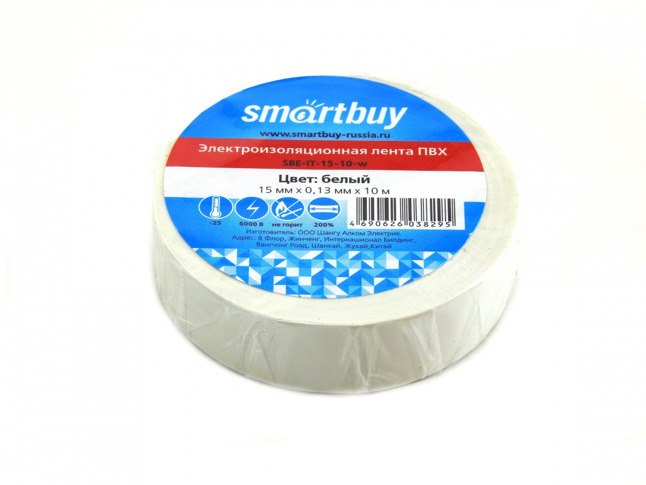 Изолента ПВХ, 130 мкм/1.5 см/10 м, белая, SmartBuy (SBE-IT-15-10-w)