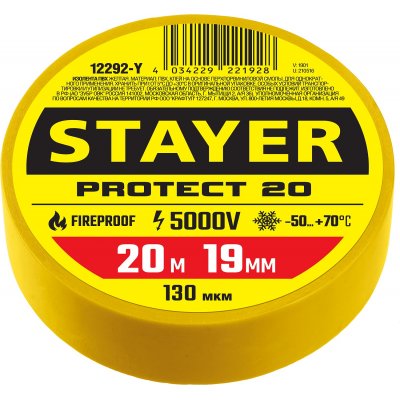 Изолента ПВХ, 130 мкм/1.9 см/20 м, желтая, STAYER Protect-20 (12292-Y)