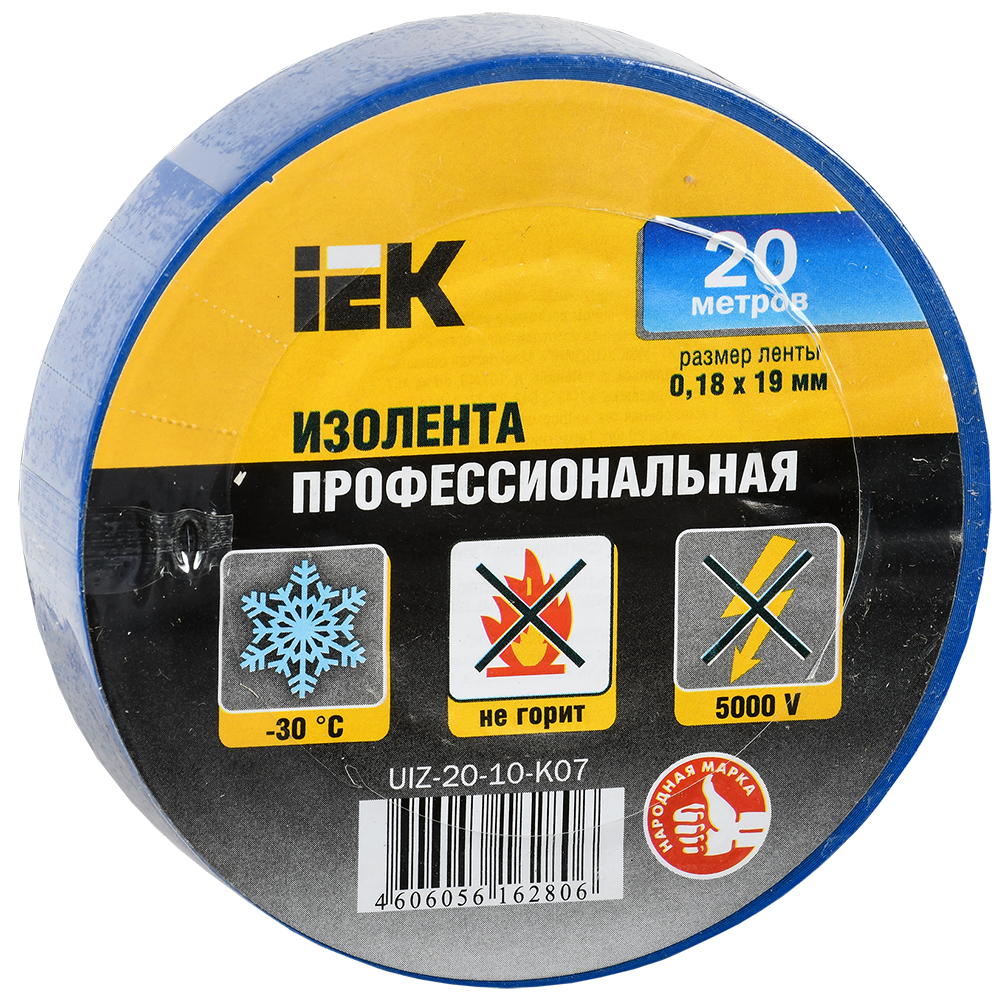 Изолента ПВХ UIZ-20-10-K07, 180 мкм/1.9 см/20 м, синяя, IEK Профессиональная (UIZ-20-10-K07), UIZ-20-10-K07