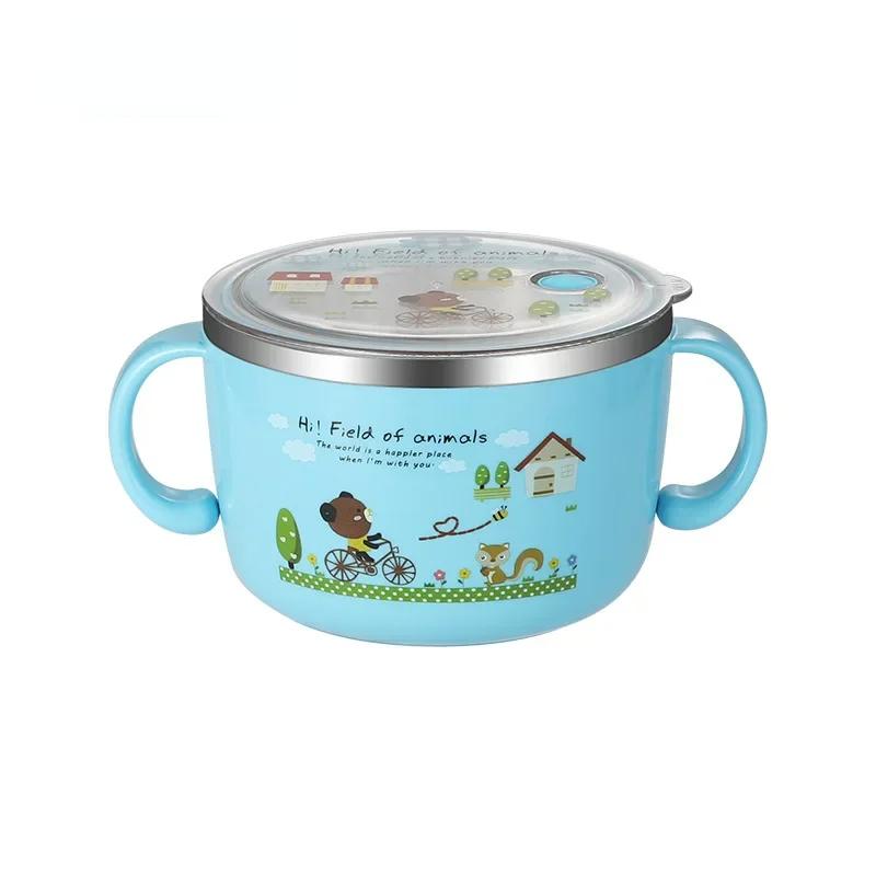 Изолированная миска из нержавеющей стали 304 для детей, милая мультяшная миска для супа с лапшой, большая емкость, ланч-бокс для студентов, контейнер для еды синий