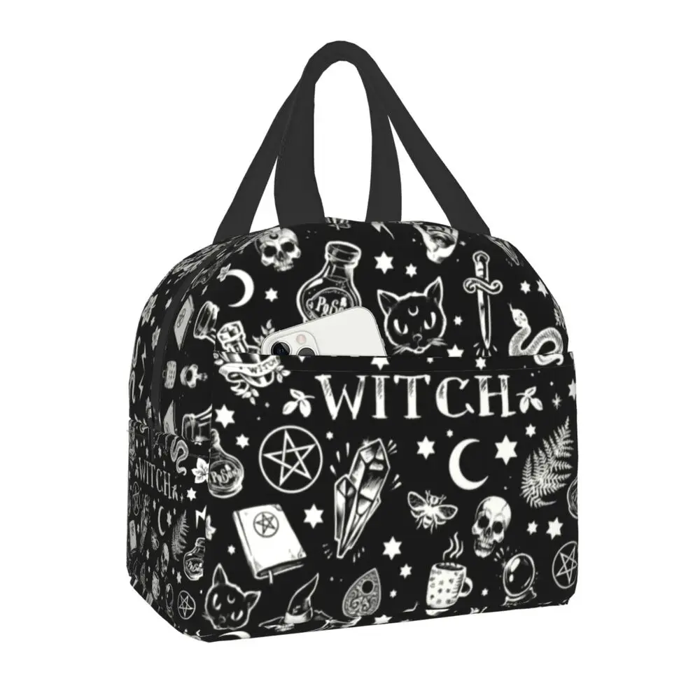 Изолированная сумка для обеда с рисунком ведьмы для работы школы Хэллоуина кошки черепа Водонепроницаемая Термосумка для обеда женская детская сумка для пикника