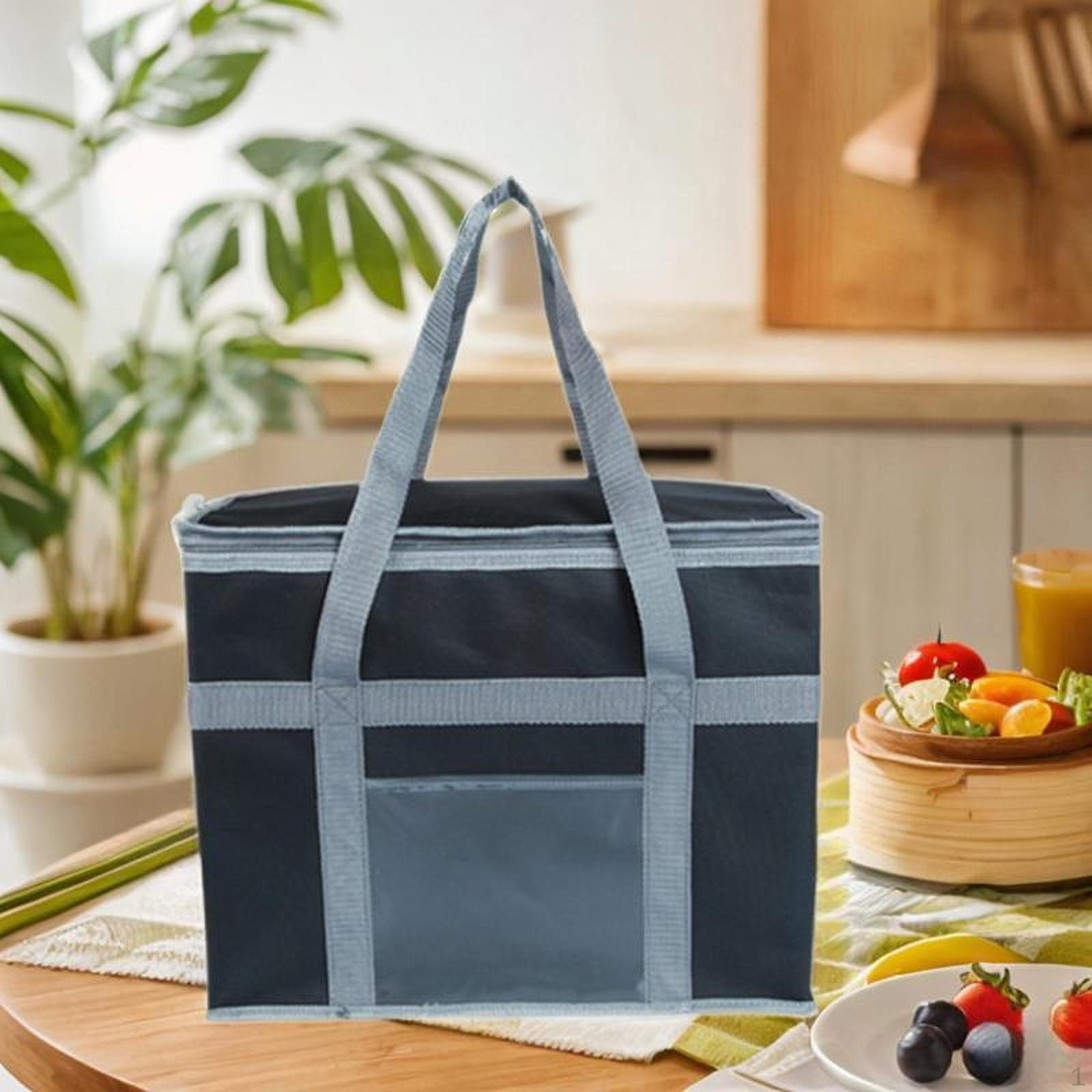 Изолированная сумка-холодильник большой емкости для улицы, утолщенная, коммерческая, многоразовая, для покупок, доставки еды black grey