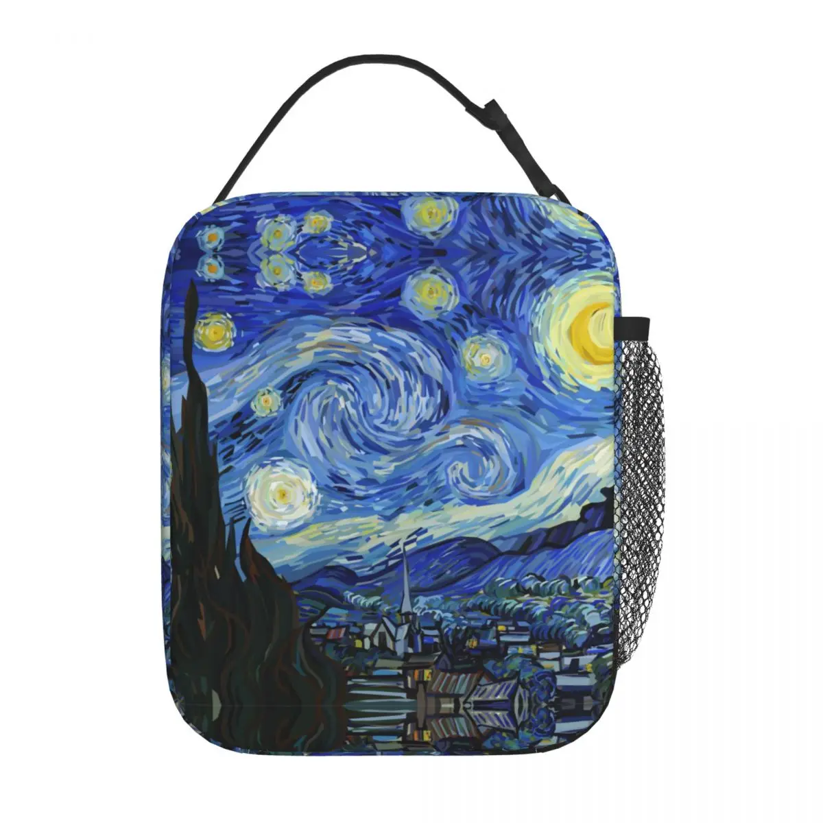 Изолированный Ланч-бокс с рисунком Ван Гога, Ланч-бокс с изображением звездной ночи, многофункциональный охлаждающий термальный Ланч-бокс для школы
