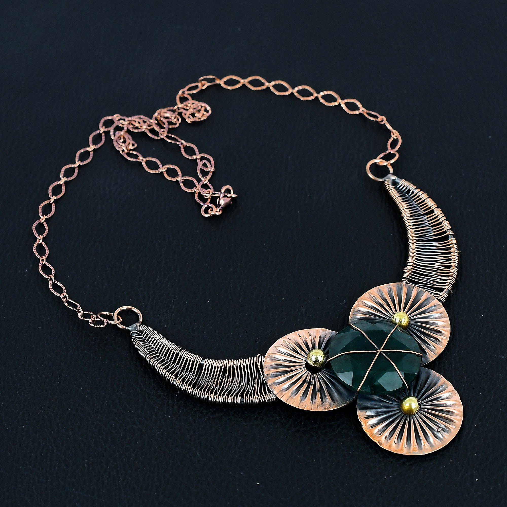 Изумрудное ювелирное ожерелье ручной работы из драгоценного камня ручной работы из чистой медной проволоки 18 Inches зелёный