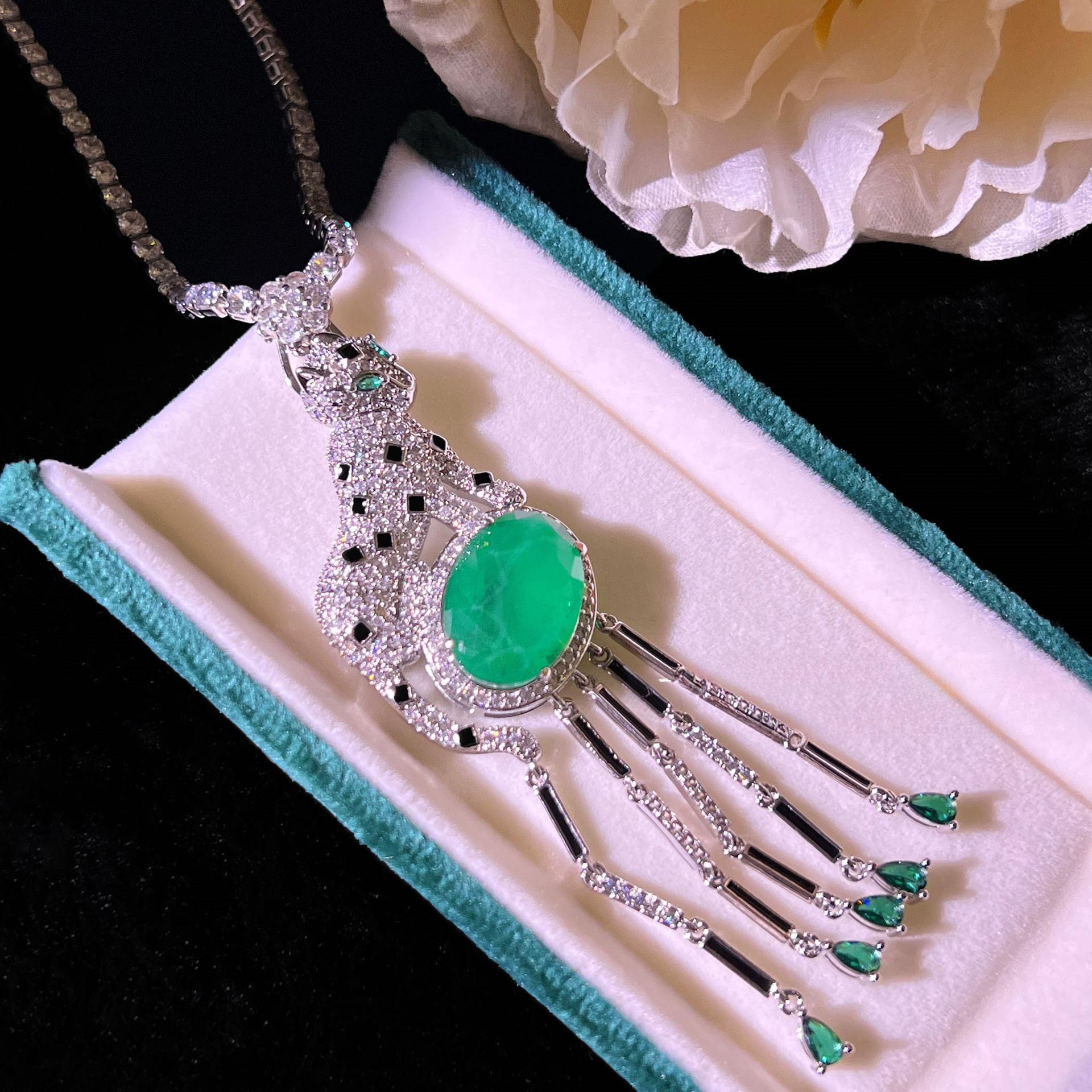 Изумруд с хлопковой кисточкой, ожерелье, леопардовый комплект серег, винтажные длинные серьги-гвоздики, серьги с открытым кольцом в виде гепарда, женские