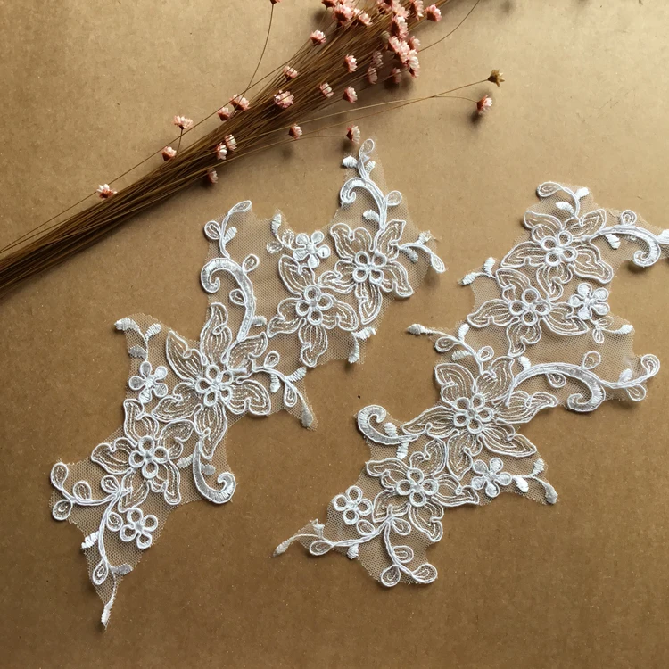 Изысканная вышивка кружева аппликация медальоны зеркальное кружево для свадебного платья