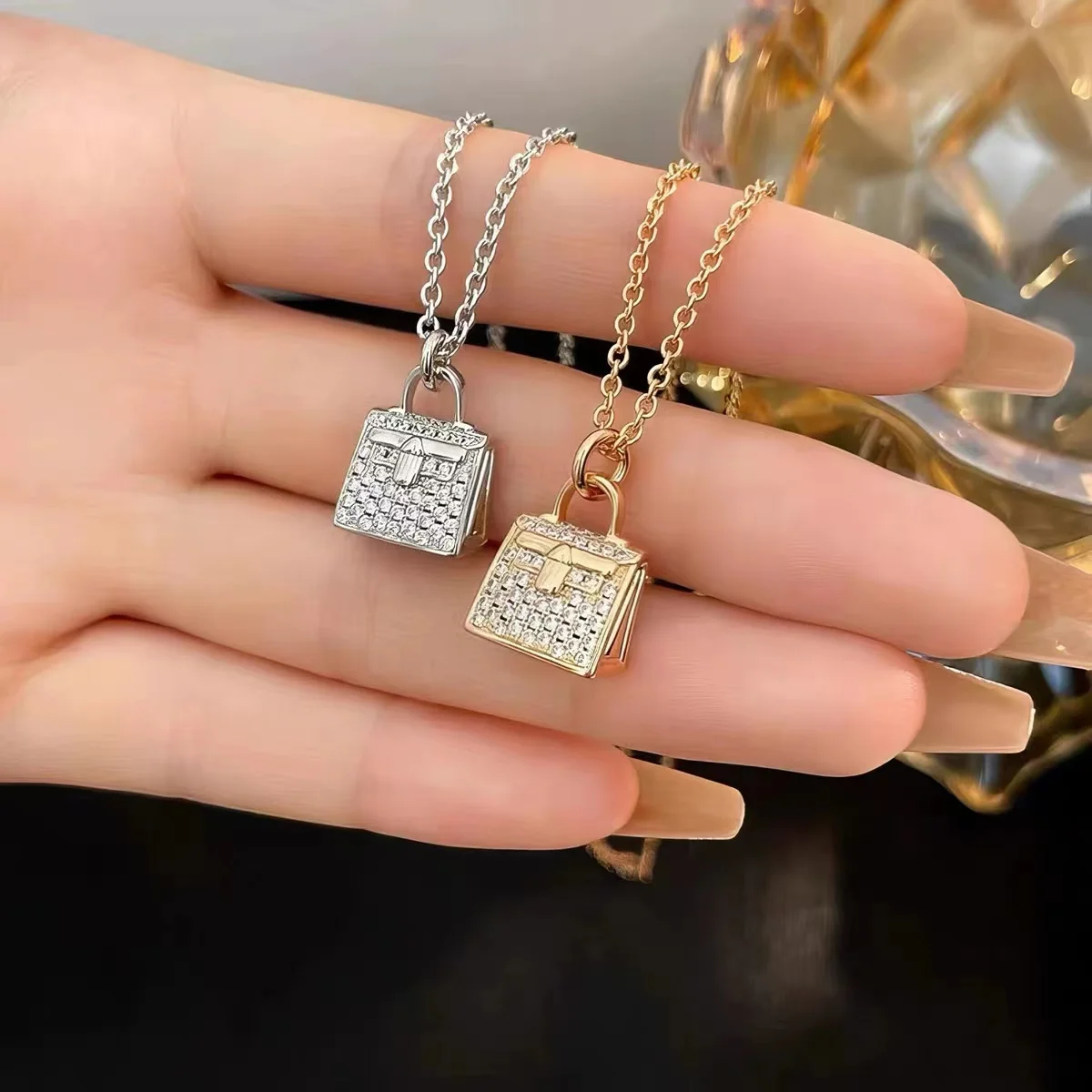 Изысканное дизайнерское ювелирное изделие из стерлингового серебра с цирконом женское ожерелье с подвеской в виде Сумочки Яркий Модный брендовый подарок