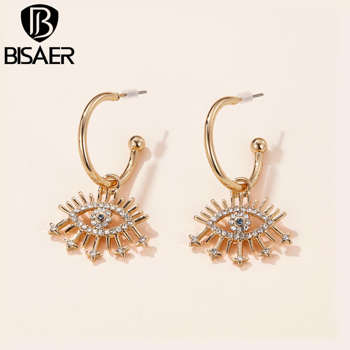 Изысканные серьги-гвоздики BISAER с блестящими глазами дьявола для женщин, высокое ювелирное искусство Earring