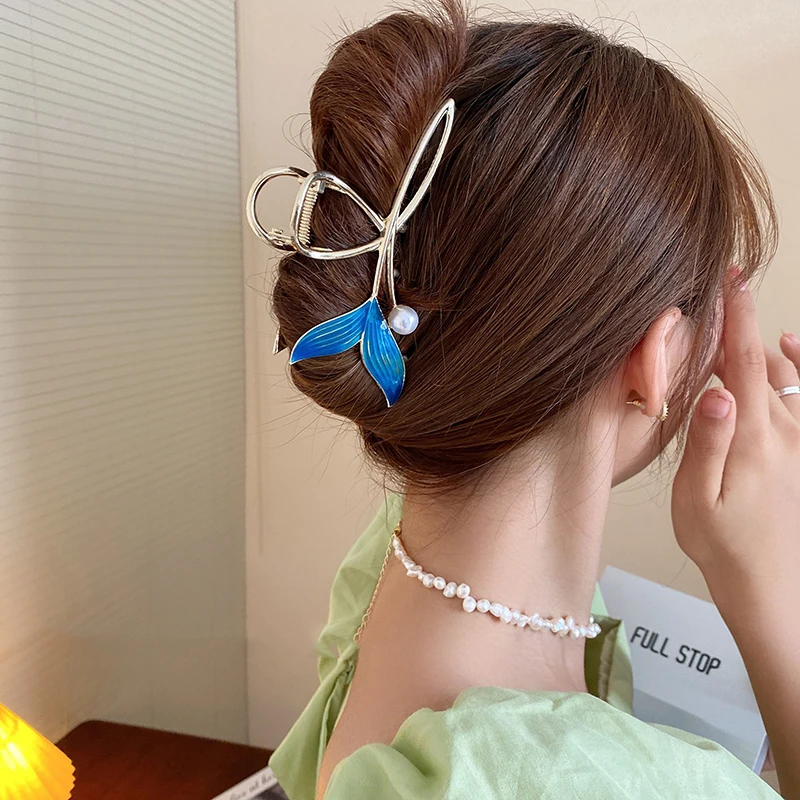Изысканный Синий жемчужный рыбий хвост корейский большой захват для волос заколка-краб Модные женские аксессуары для волос зажим для волос головной убор