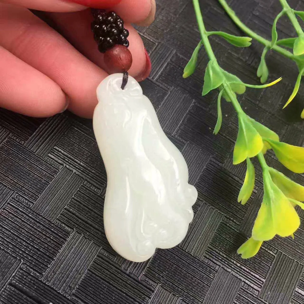 Изысканный HetianJade Jixiang подвеска в виде бергамота DIY Ювелирные изделия 21*39 мм P0074