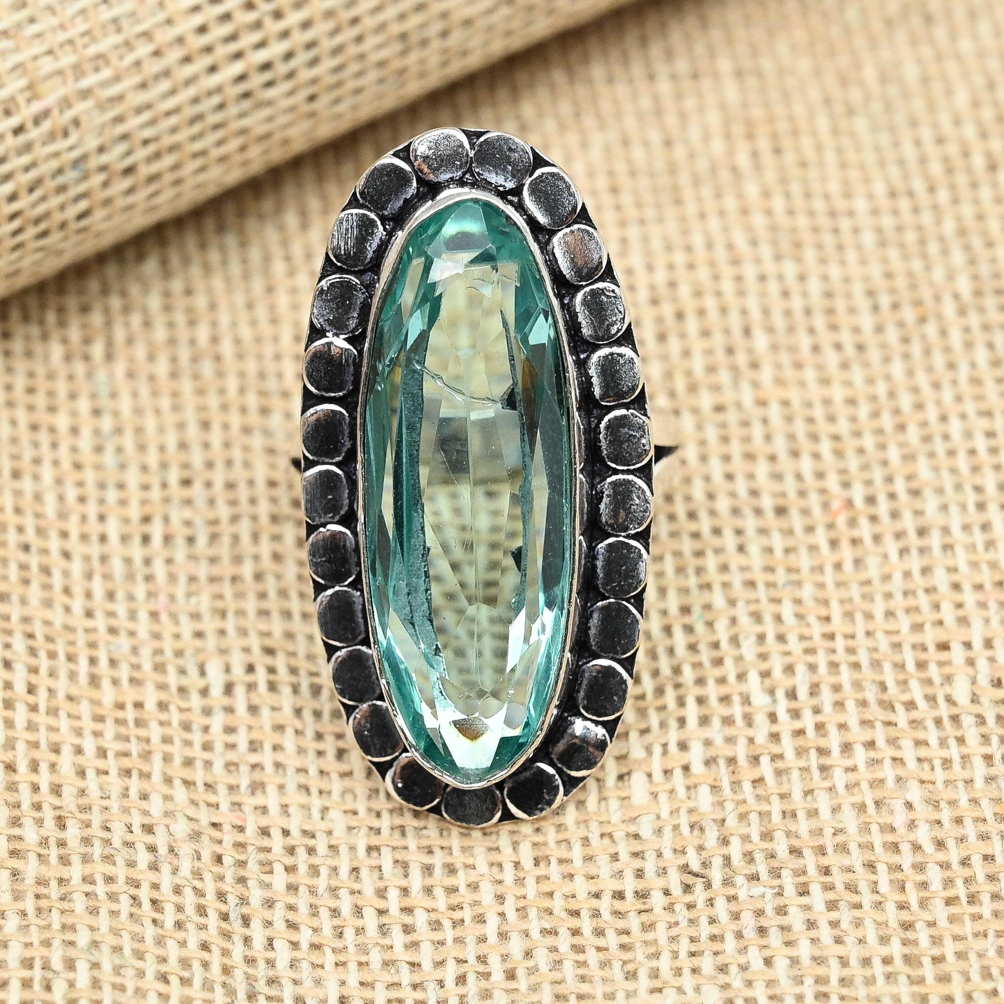 Изящное ювелирное кольцо ручной работы из стерлингового серебра 925 пробы с аква-апатитом и драгоценным камнем для нее 12 синий