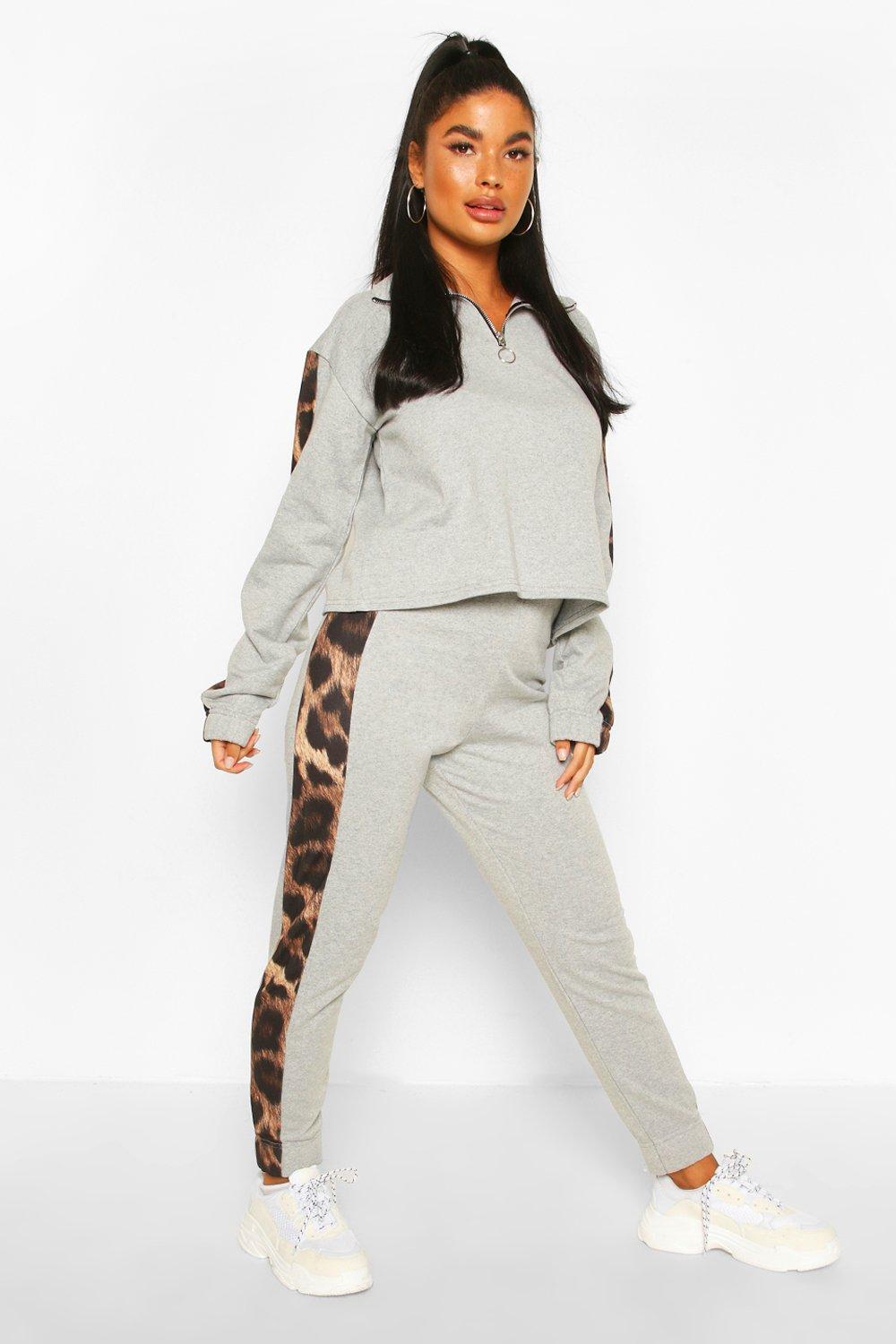 Из коллекции «Petite» — Джоггеры с полосками по бокам с леопардовым принтом, Grey
