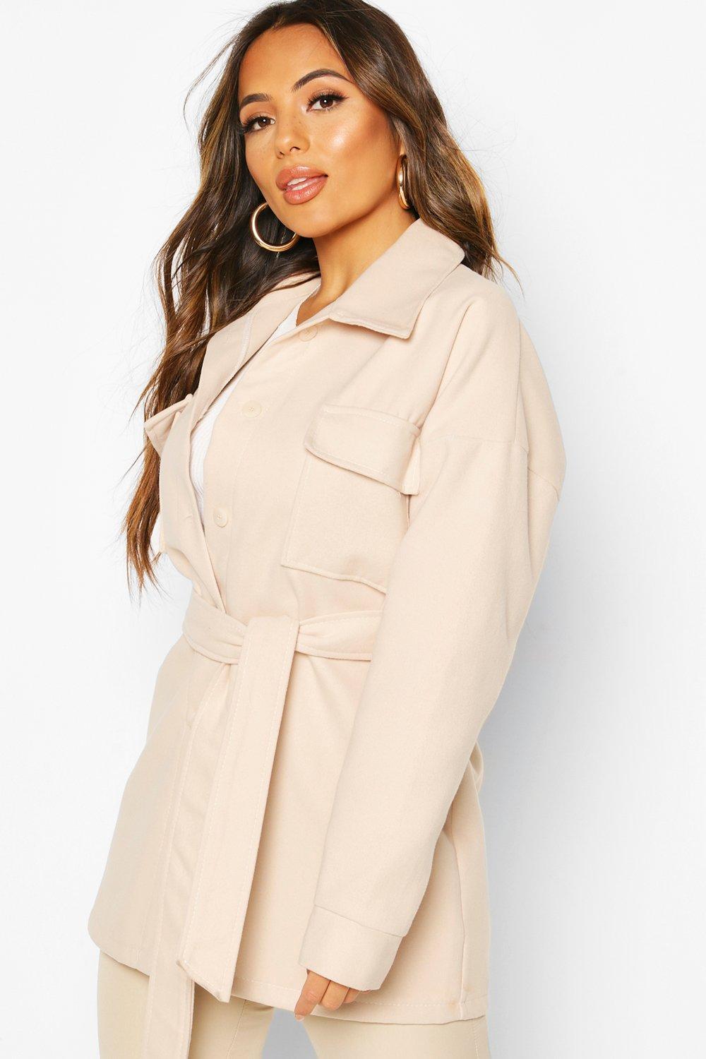Из коллекции «Petite» — Куртка с эффектом шерстяной ткани с поясом и карманом, Ecru