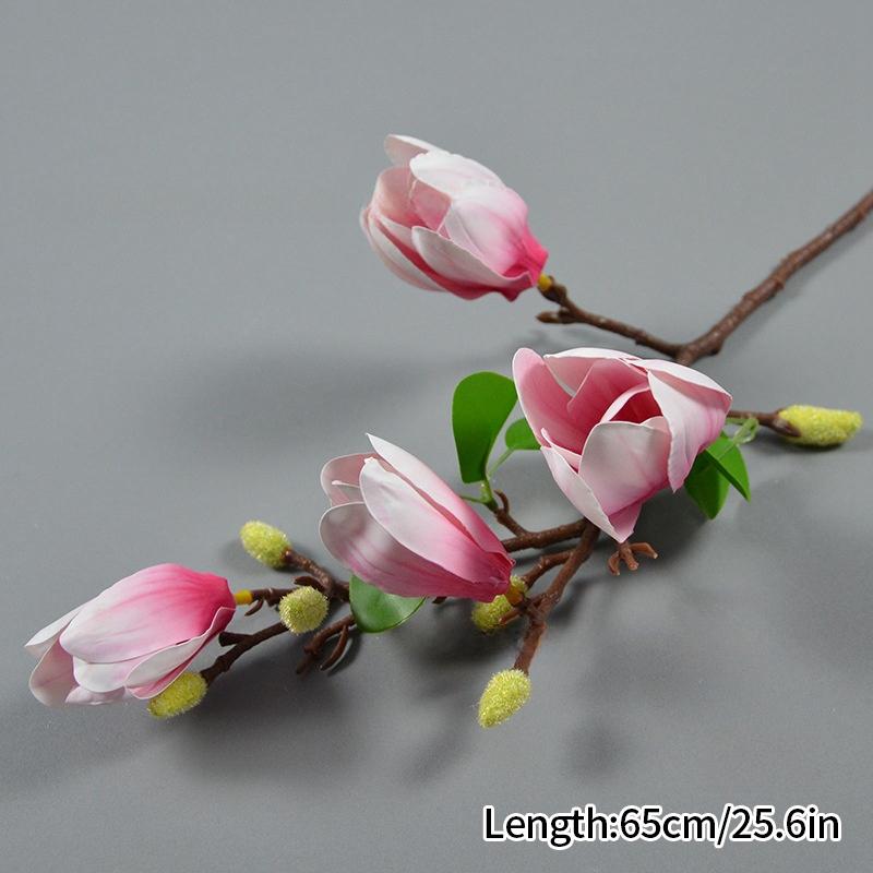 Имитация декоративного букета из 4 головок магнолии, реалистичные цветочные бутоны, ландшафтная ваза, декор для гостиной, флористика розовый