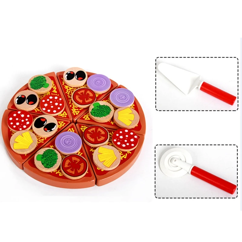 Имитация деревянной пиццы и овощей, игрушка для кухни, игра для ролевых упражнений, обучающая игрушка для детей, подарок для ребенка