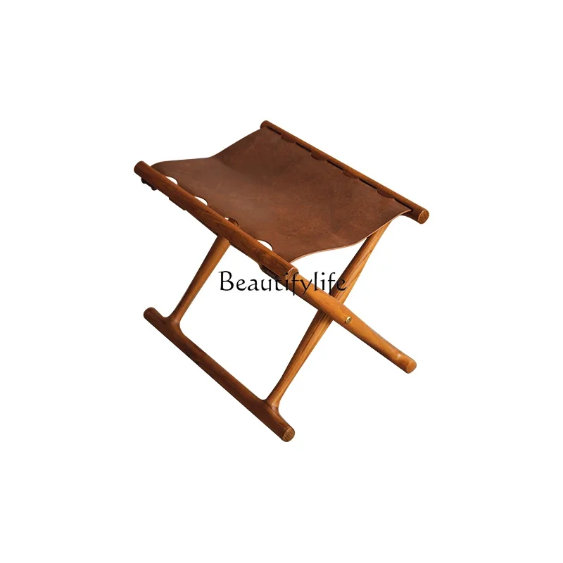 Импортный ретро стул из массива дерева складной лагерный стул из воловьей кожи уличная портативная маленькая скамья