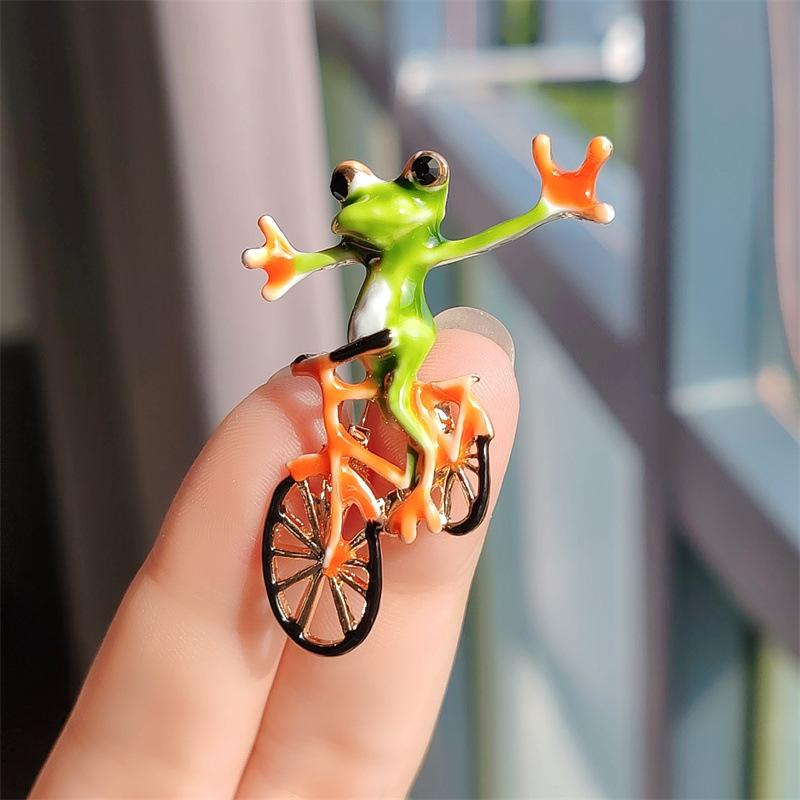 Индивидуальная универсальная забавная брошь в виде лягушки на велосипеде для женщин-хипстеров, животных, креативная булавка для аксессуара на пиджак