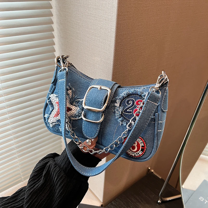 Индивидуальные сумки через плечо из ткани Оксфорд с цепочкой и аппликацией и пряжкой, однотонная сумка через плечо, женские сумки 2024 дюйма