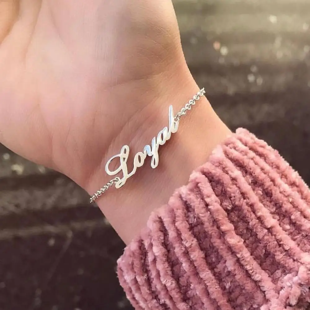 Индивидуальный браслет, женские браслеты с именем на заказ, из нержавеющей стали, с гравировкой рукописного ввода, амулеты браслет с подвес...