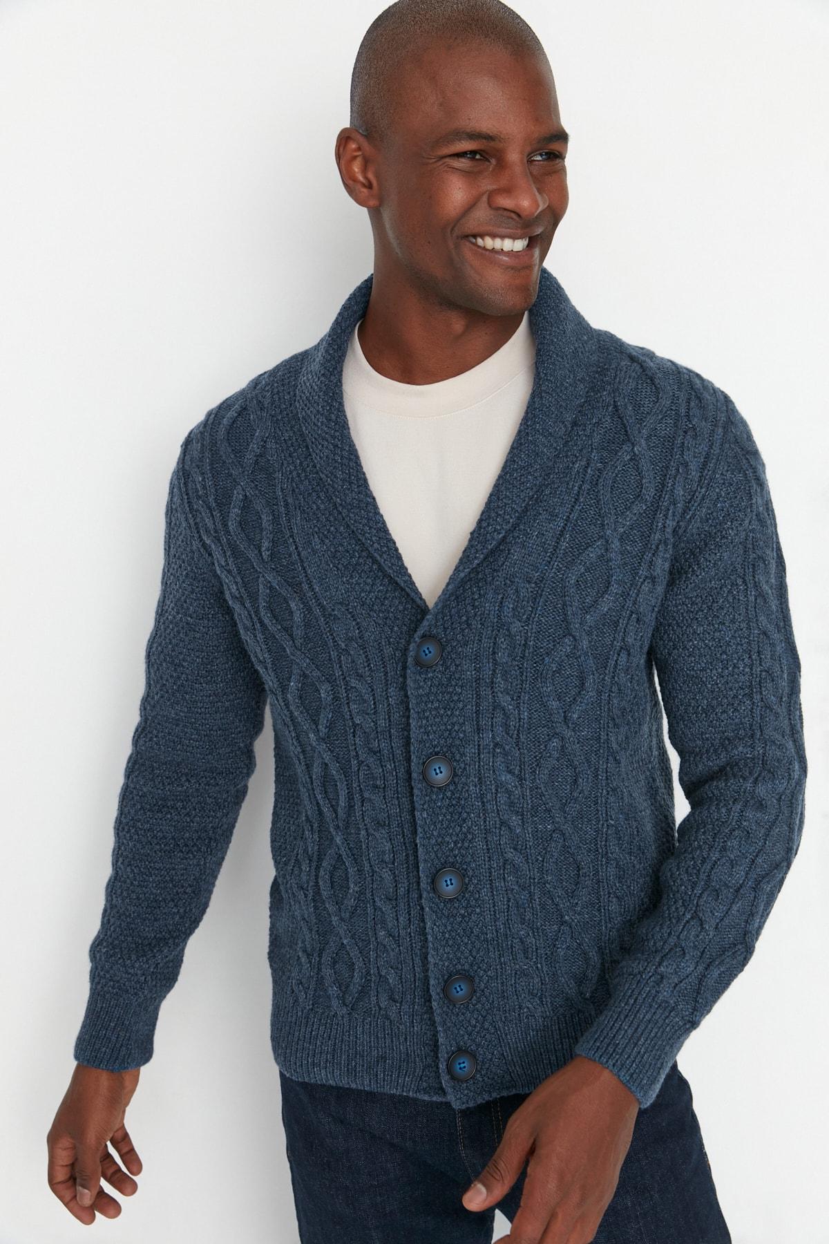 Индиго мужской приталенный вязаный свитер с шалевым воротником кардиган TMNAW22HI0137