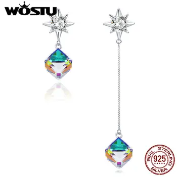 WOSTU New Arrival Silver 925 Jewelry Earring Colorful Aurora One Long One Short Drop Earring Women Earring Gift BKE545