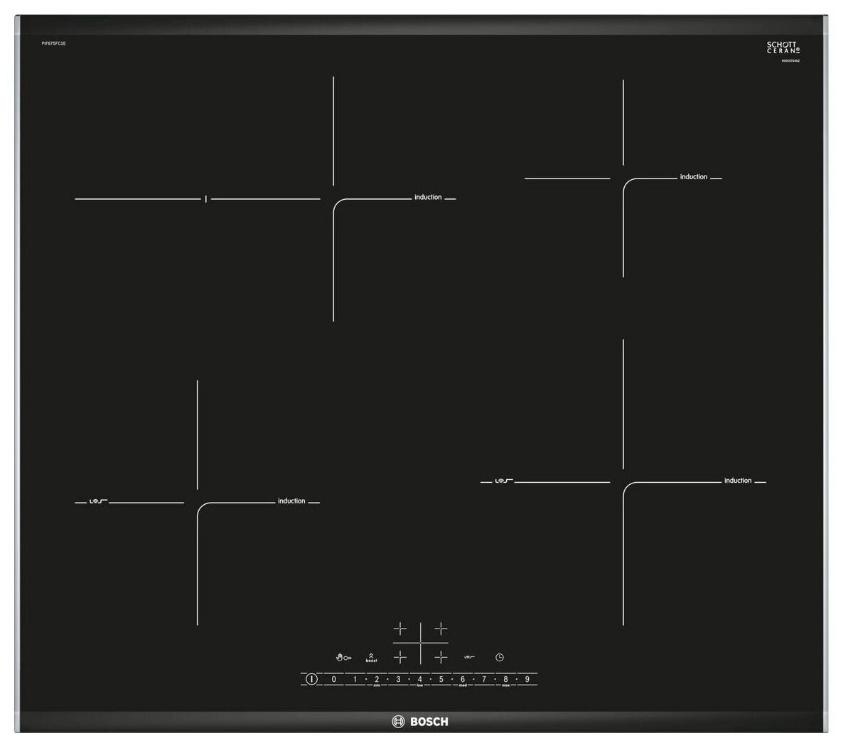 Индукционная варочная панель Bosch Serie 6 PIF675FC1E 4 конфорки, черный (PIF675FC1E), Черная, PIF675FC1E