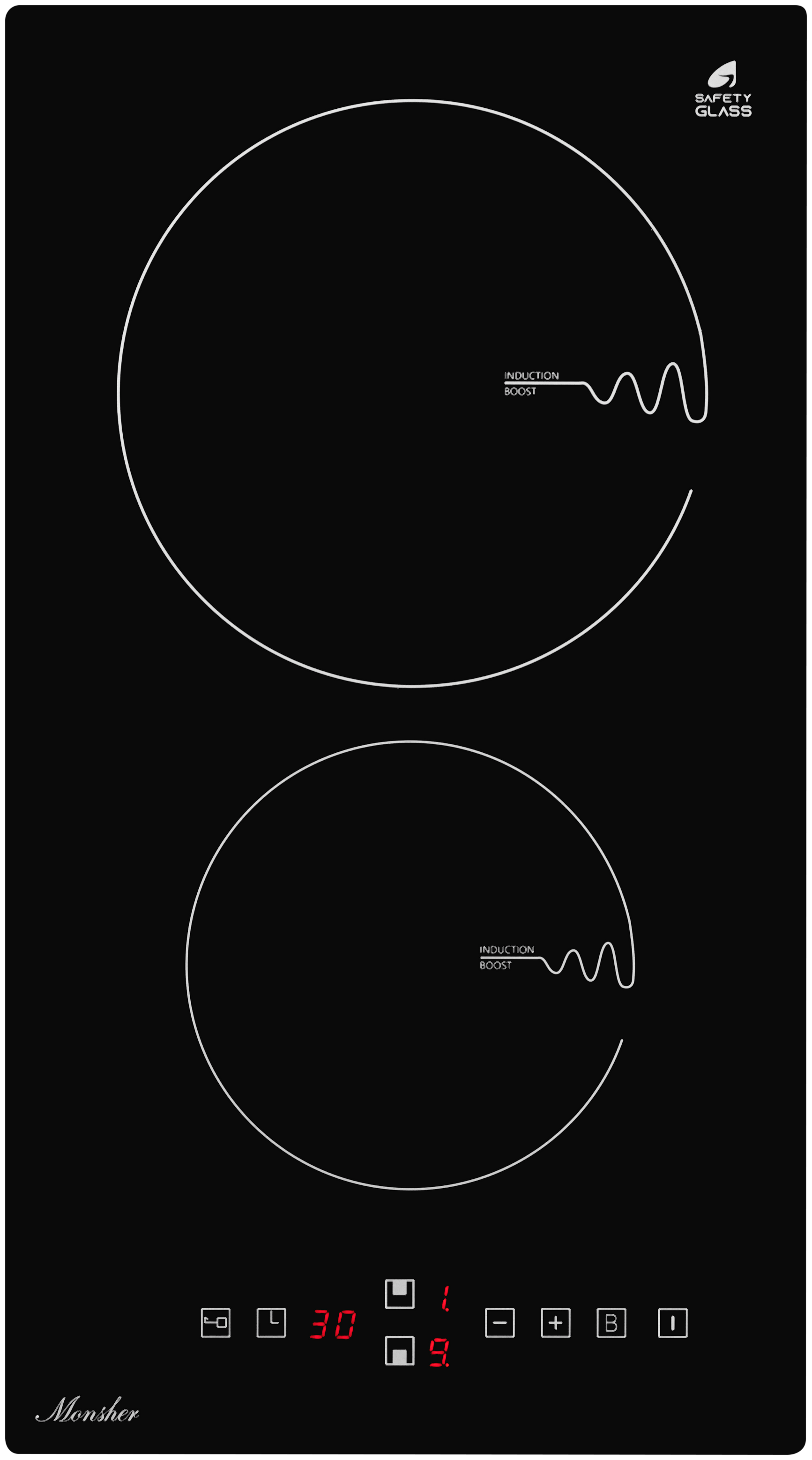 Индукционная варочная панель Monsher MHI 3001, 2 конфорки, черный (MHI 3001), Черная, MHI 3001