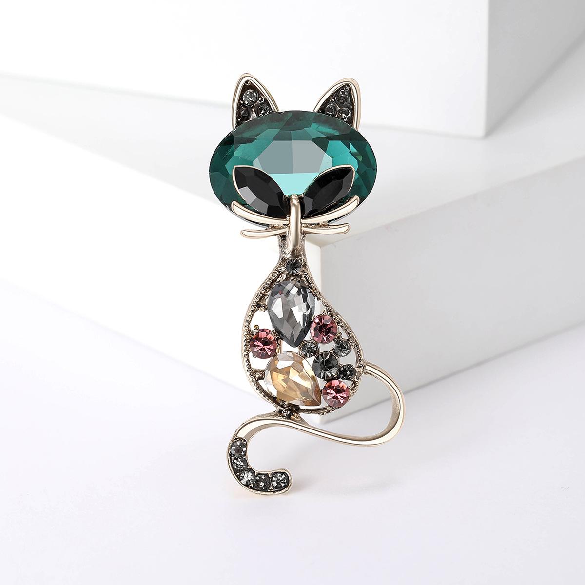 Инкрустированная бриллиантами высококачественная брошь в стиле ретро в виде кошки, брошь, пряжка для шелкового шарфа