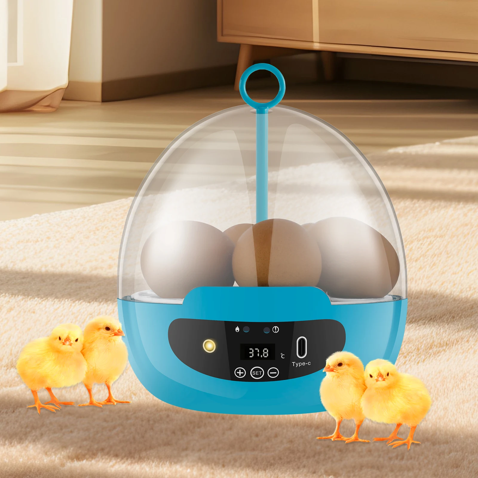 Инкубатор для яиц, умный инкубатор для инкубации, 6 лампочек с автоматическим поворотом на 360 ° и контролем температуры