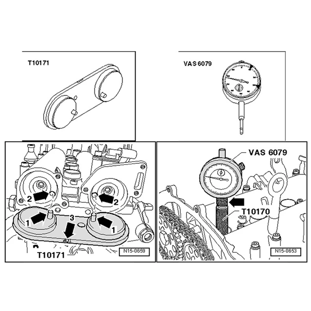 Инструменты синхронизации двигателя T10171A для VW AUDI Seat Skoda 1,4/1.6FSi 1,4 TSi 1,2 TFSi/FSi Inc, манометр набора Tdc + блокировочные инструменты