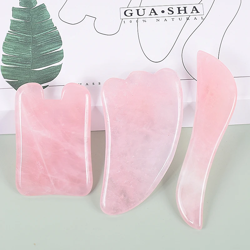 Инструмент Для Массажа Гуаша с натуральным розовым кварцем, 3 шт.