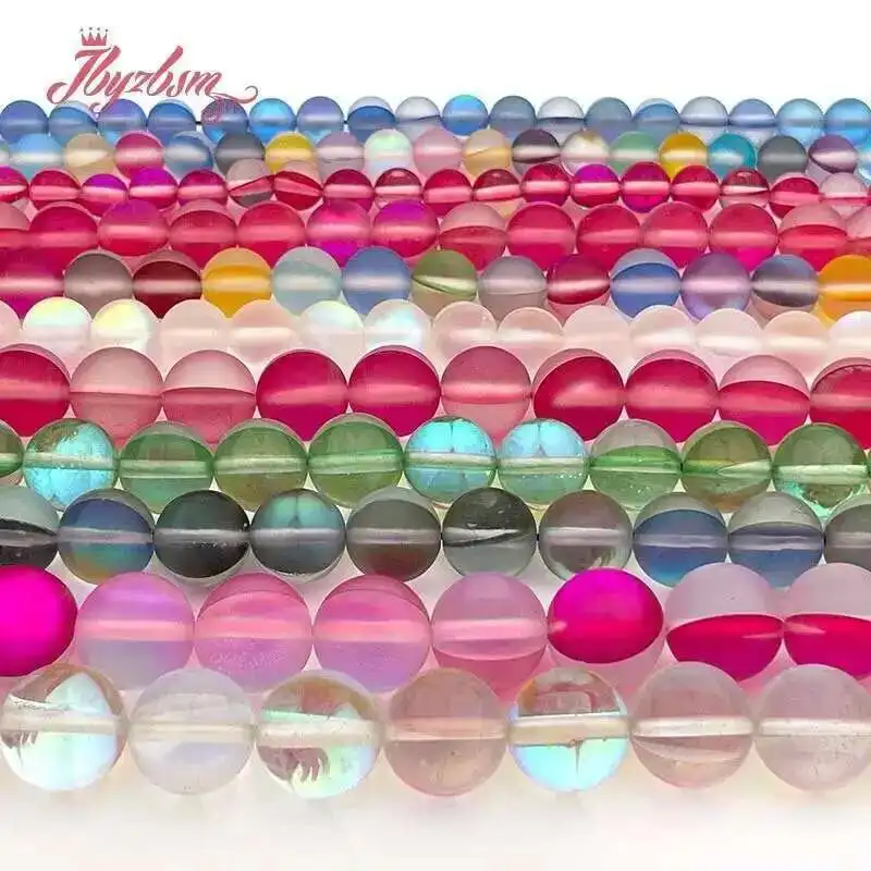 6/8/10/12mm Round Moonstone Crystal Glitter Energy Stone Beads For Necklace Bracelet Spacer Strand 15" DIY Jewelry Making