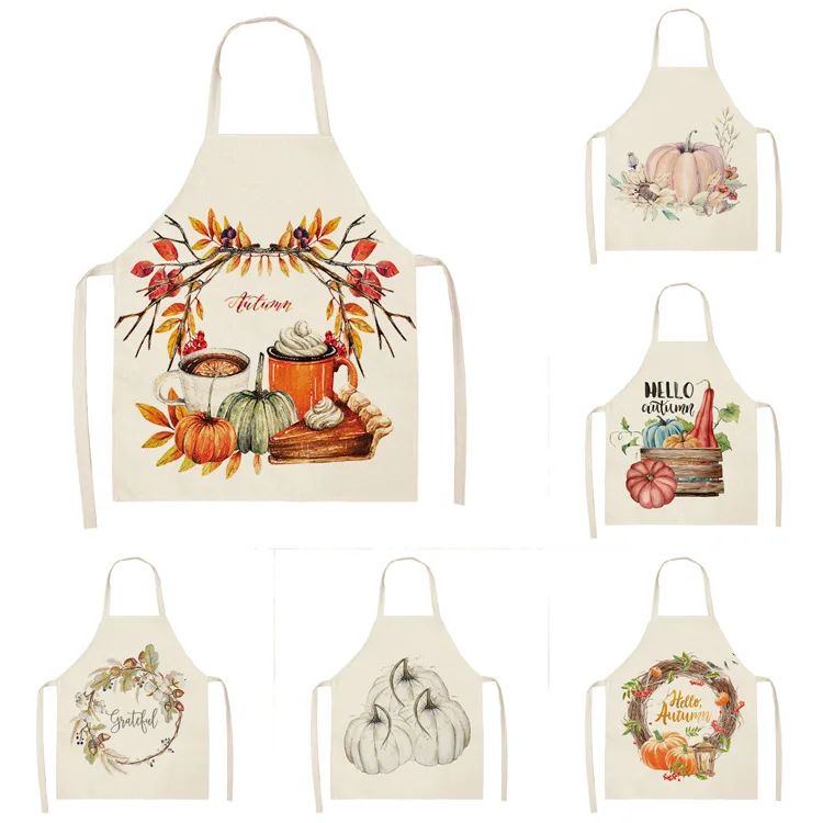 Инструмент для уборки дома, Кухонный Фартук оранжевого типа с тыквой, фартук для взрослых из хлопка и льна, фартук без рукавов для взрослых