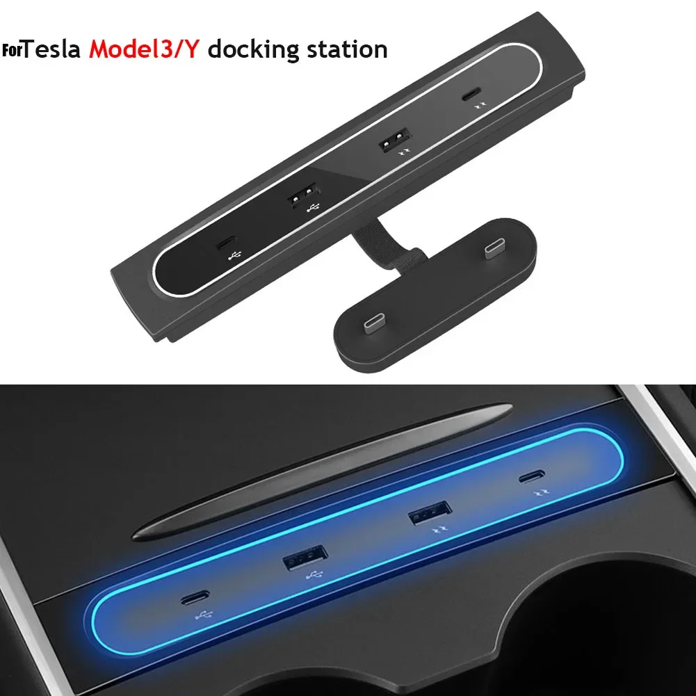 Интеллектуальная док-станция для Tesla 27 Вт, быстрое зарядное устройство, USB-разветвитель шунта для модели 3 2022 2023, модель Y, центральный распределитель управления
