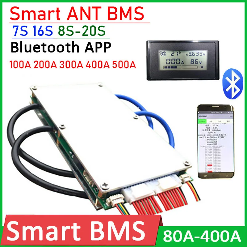 Интеллектуальная плата защиты литиевой батареи 7S -16S 8S -20S BMS ANT Bluetooth баланс 150A 300A 400A 500A Li-Ion lifepo4 24V 48V 60V