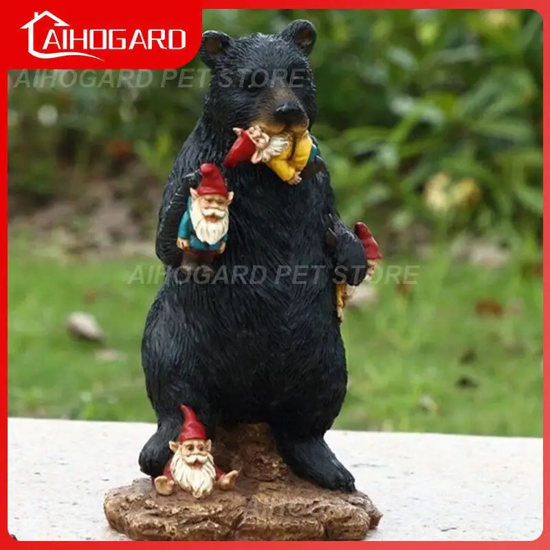 Garden Statue Elf Dwarf Black Bear Decoration Animal Figurine Resin Desktop Handmade Crafts Sculpture Garden Ornament