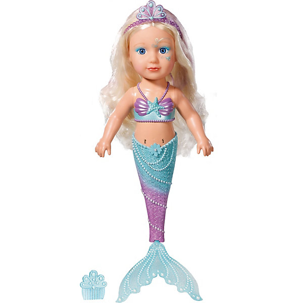 Кукла Zapf Creation Baby Born «Сестричка Русалочка» обладает густыми волосами, которые можно причесывать. Лицо девочки выглядит реалистично, у нее голубые глаза и милая улыбка. Куклу можно купать – в воде ее плавник двигается как при плавании.