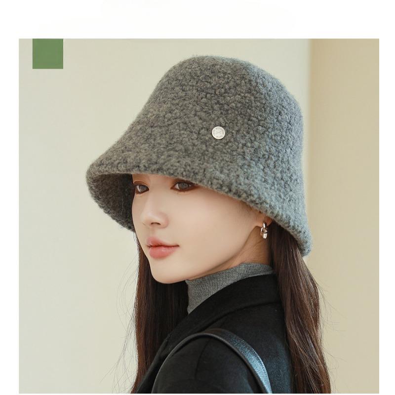Интернет-знаменитость Сяохуншу рекомендует детскую шляпу-ведро из гранулированной шерсти с широкими краями, солнцезащитный козырек для маленького лица, теплая осенне-зимняя шапка M(56-58cm)