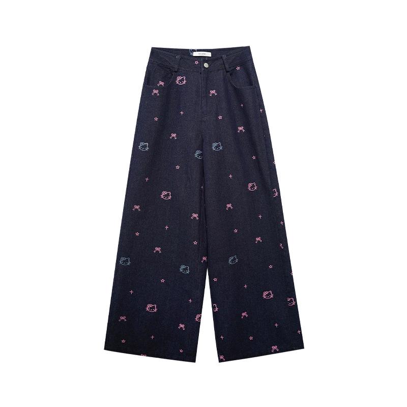 Интерпретация Красоты: Джинсы прямого кроя с высокой талией, ранняя весна 2025 г. - Милый мультяшный принт Large темно-синий
