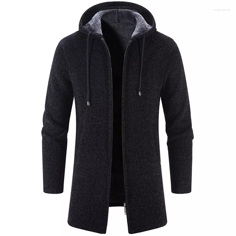 Men's Trench Coats 2022 And Winter Cashmere Men's Cardigan Chenille Outer Sweater Coat Windbreaker, Dark grey
