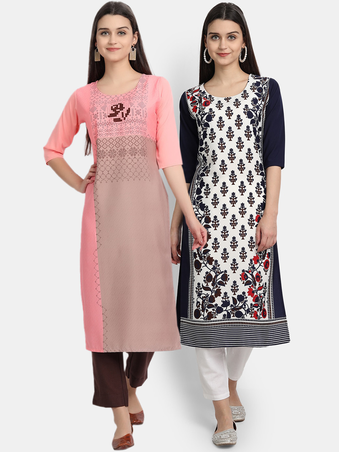 Ethnic basket Women Multicoloured Embroidered Flared Sleeves Thread Work Crepe Kurta, Multi