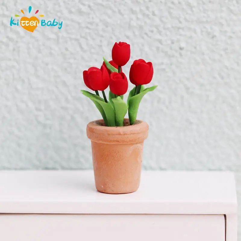 Искусственные Красные тюльпаны, мини-цветы и растения, украшения для кукольного домика 1/6 1/12