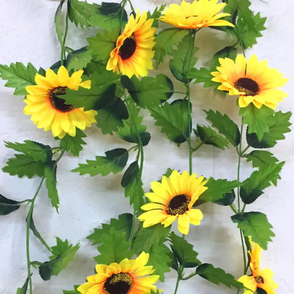 Искусственные Шелковые Подсолнухи, плющ, лоза, искусственные цветы с зелеными листьями, подвесная гирлянда, садовые заборы, украшение для д...