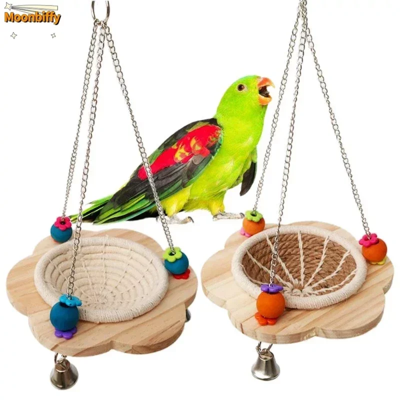 Искусственные деревянные аксессуары для птичьего домика, наконечники, Забавный попугай, подвесная веревка, клетка, тренировочная игрушка