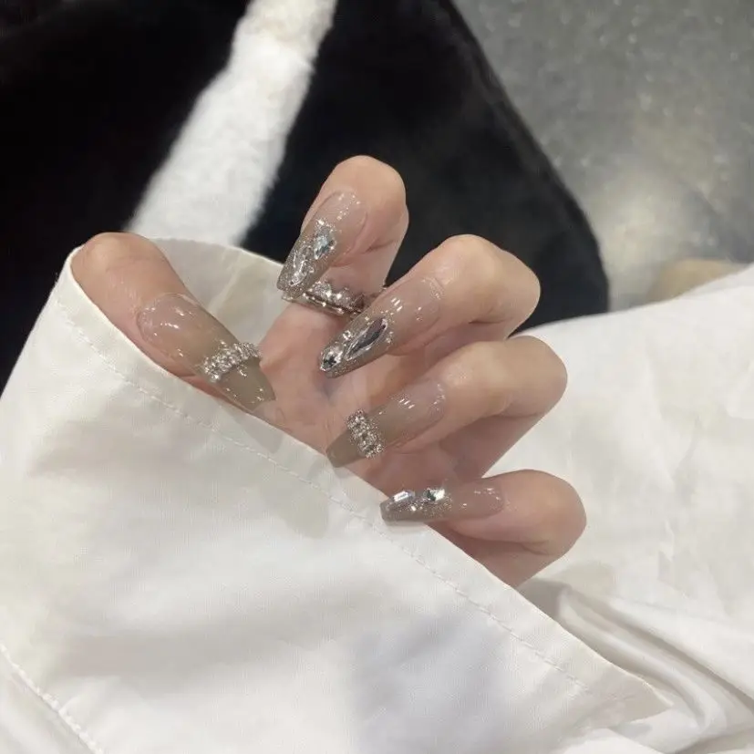 Искусственные ногти ручной работы во французском стиле с полным покрытием