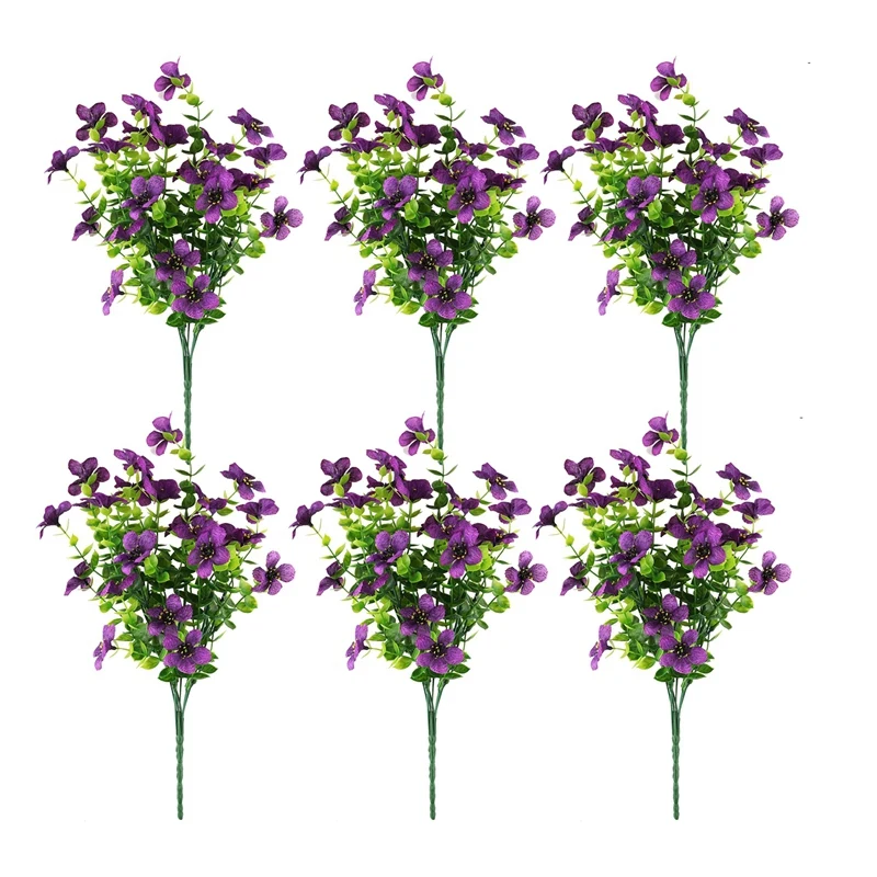 Искусственные цветы 6 пряди, УФ-стойкие искусственные растения, уличные Искусственные пластиковые цветы, садовые окна, крыльца, дома