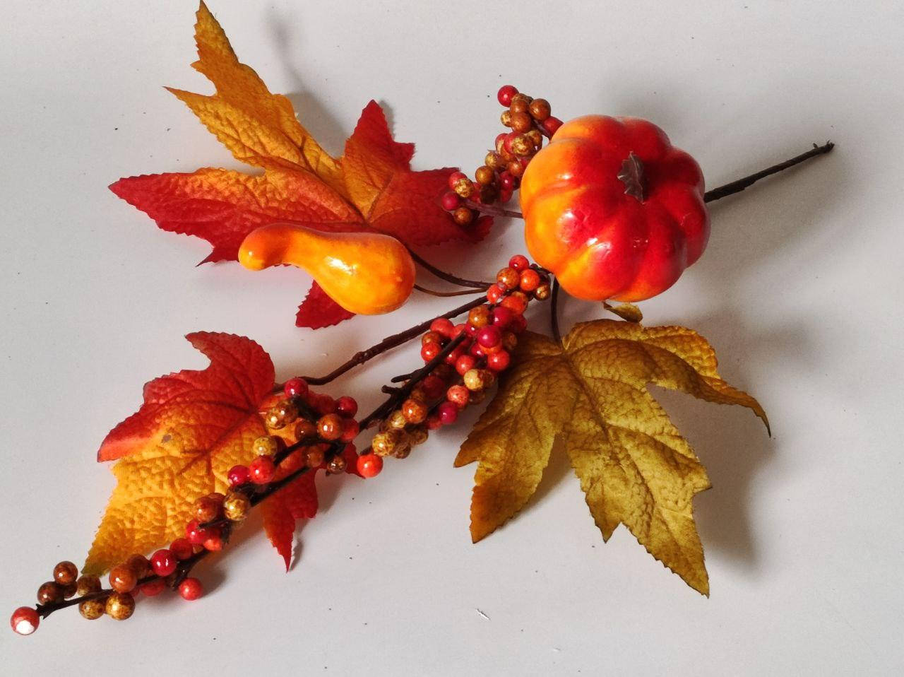 Искусственные цветы. Веточка с осенним декором большая., Оранжевый