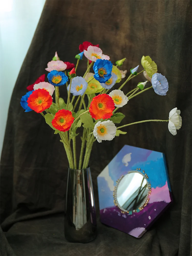 Искусственный Маковый цветок 6 шт./лот, свадебный букет, искусственные цветы, ваза для свадебного стола, аксессуары «сделай сам», украшение д...