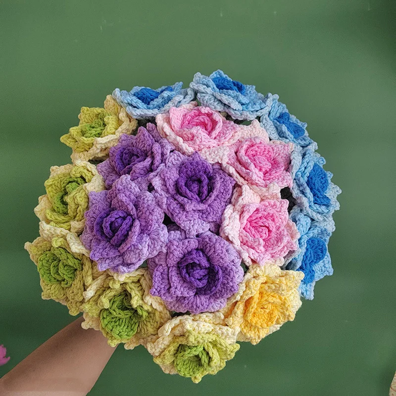 Искусственный букет розы ручной вязки, украшение для стола, искусственный букет, подарок