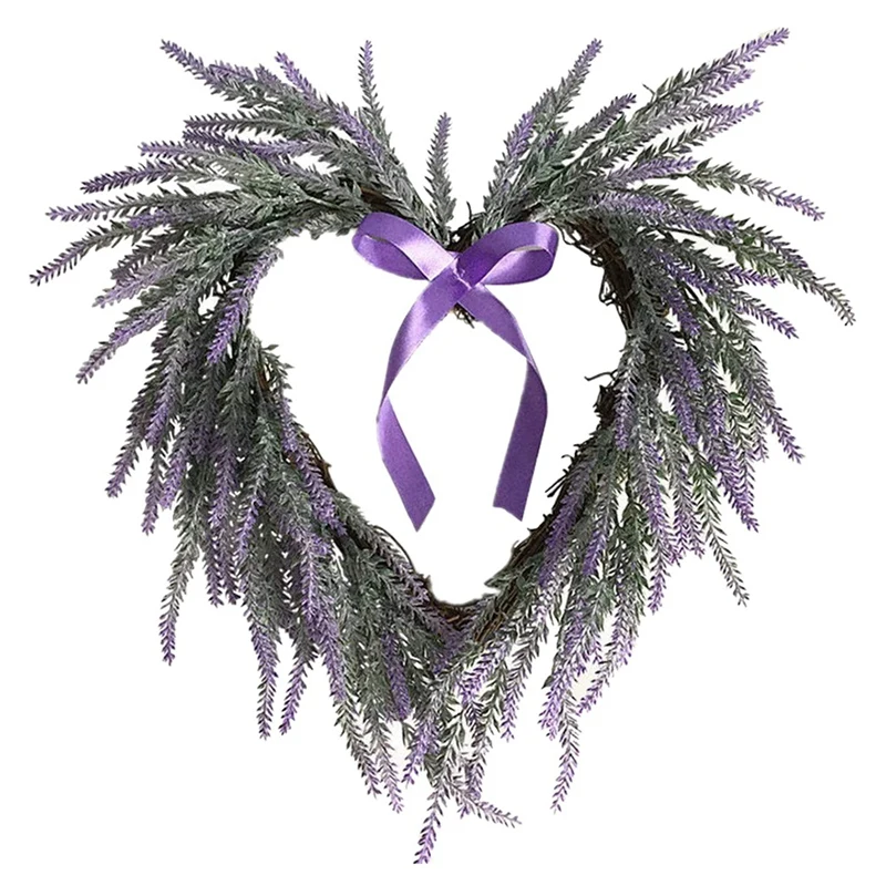 Искусственный венок лаванды в форме сердца, подвесной декор для свадебной вечеринки на дверь, на Рождество, День святого Валентина